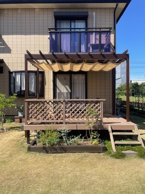 ウッドデッキでお孫さんと遊ぶため、日よけを設置!